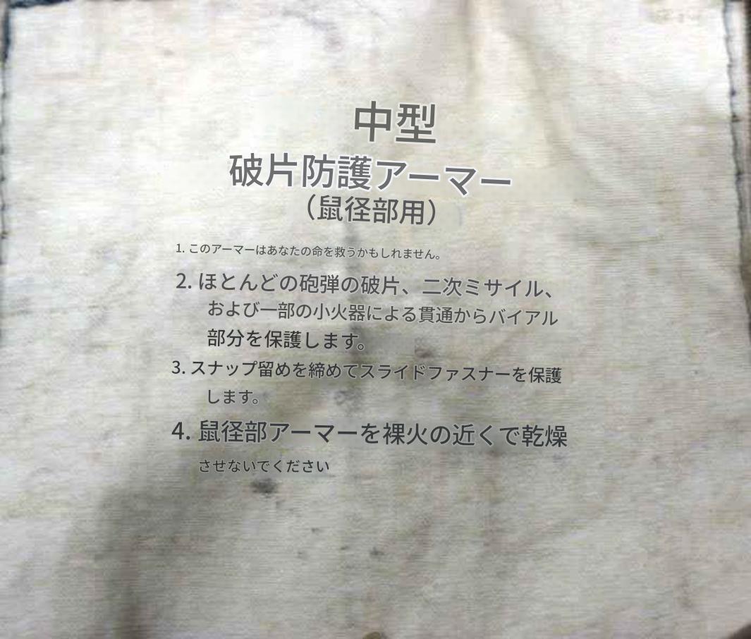 | 航空機搭乗員用アーマーに収納されているアーマー・プレート。 |